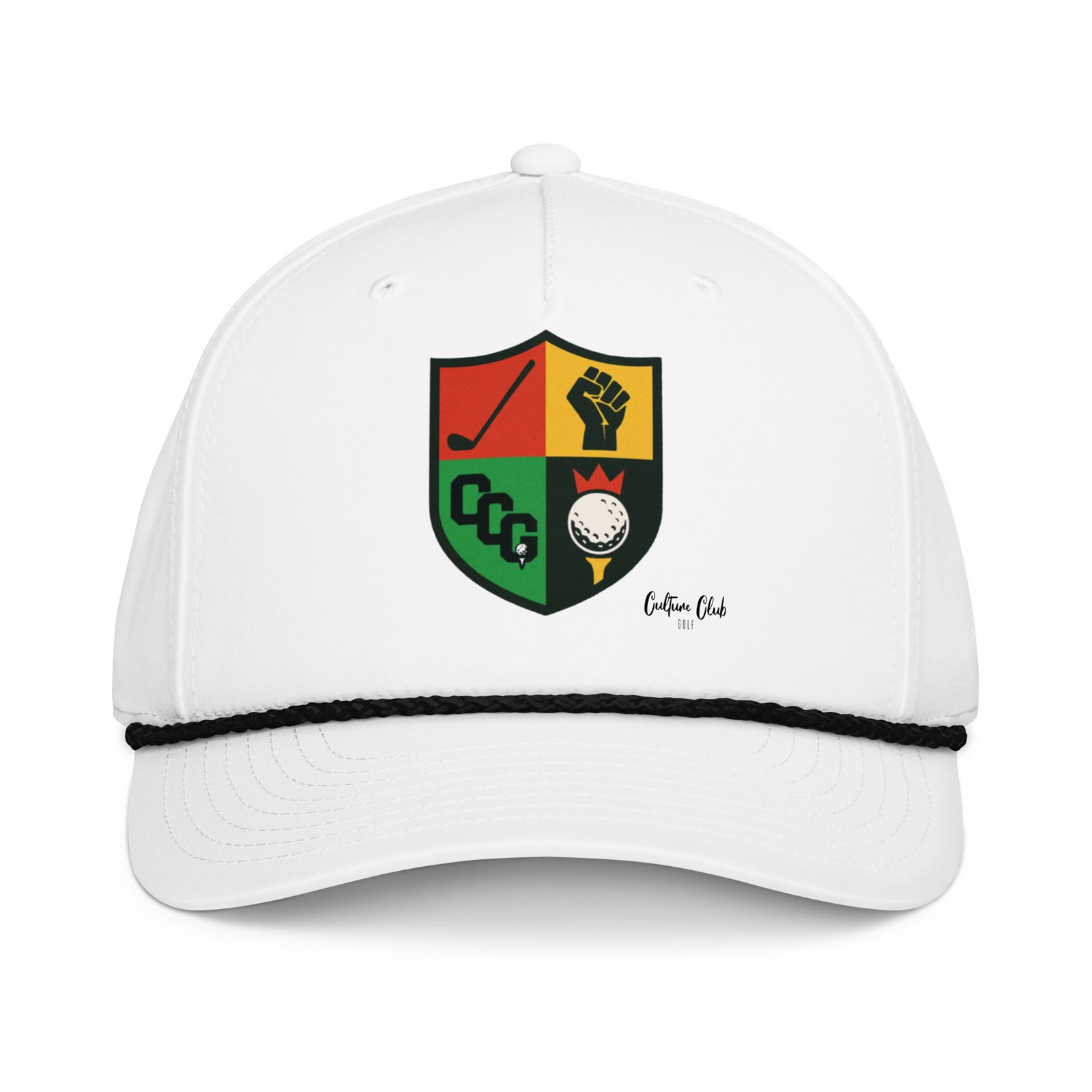 • Braided rope detailing on the bill